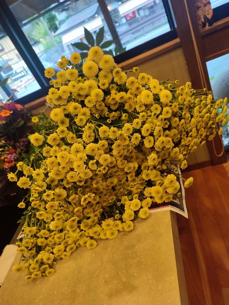 ご自宅で作られているお花。可愛い小菊を本当にた~くさん持ってきてくださいました。