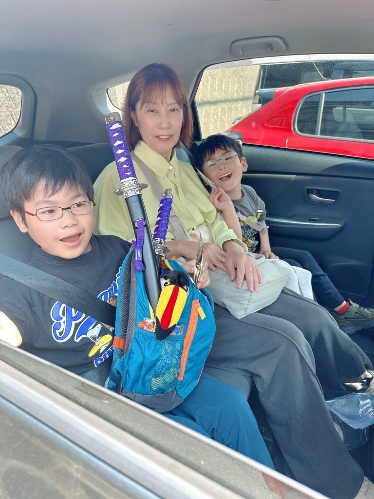 弟くんみちくんと一緒に嬉しそうにくっついている、お兄ちゃんあきくん。2人で刀を持って帰り、とってもかっこよかったです✨