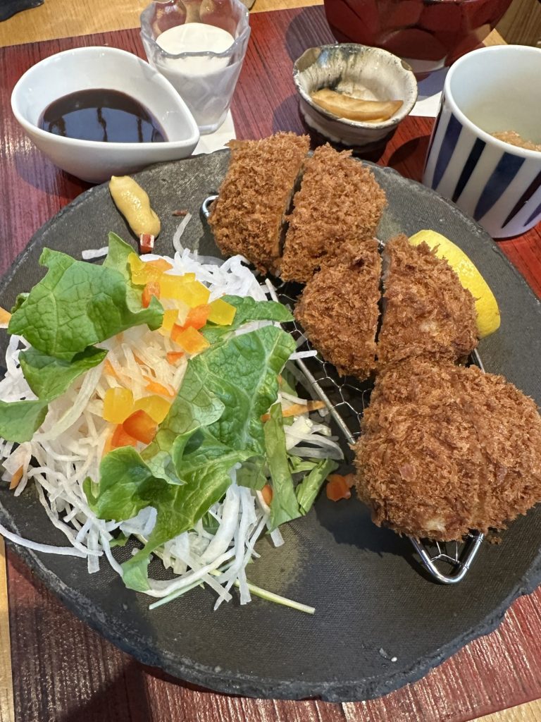 美味しいのと、ボリュームがすごい。小さな手作りの小鉢も美味しいです。