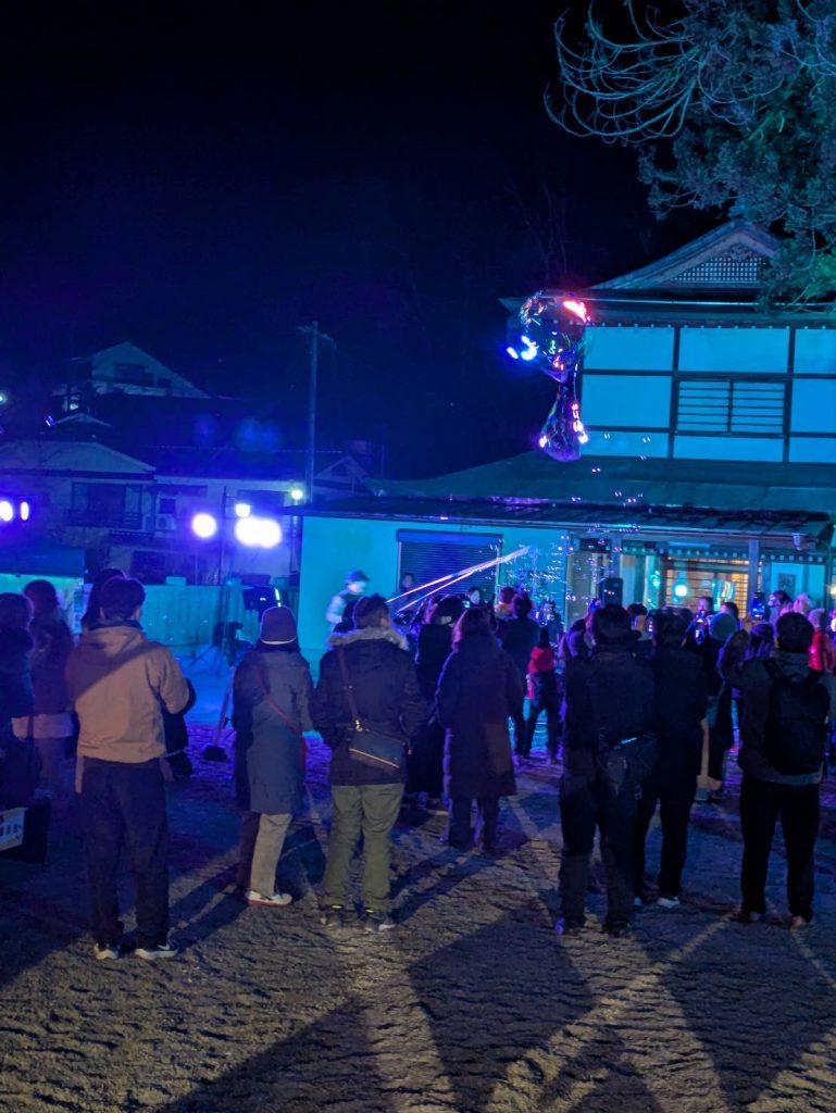昨日の点灯式では、シャボン玉も幻想的に夜空に舞い上がり、とても綺麗でした✨