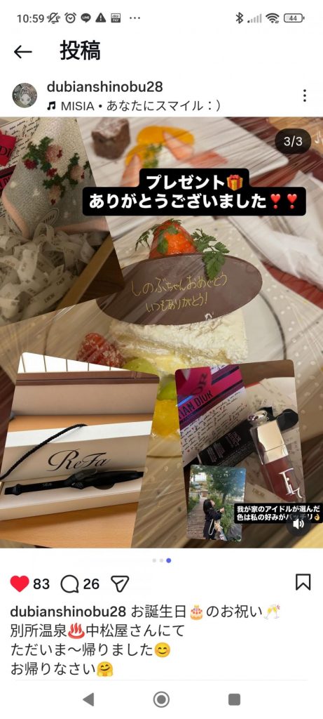 ご主人さまからは、サプライズケーキ以外にもとっておきのプレゼントがあったようです(*^^*)