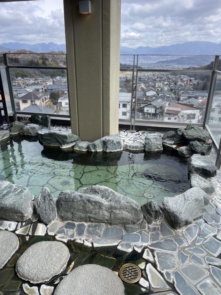 当館の大浴場は最上階にあるために、昼には周囲の山々や塩田平を一望できます。